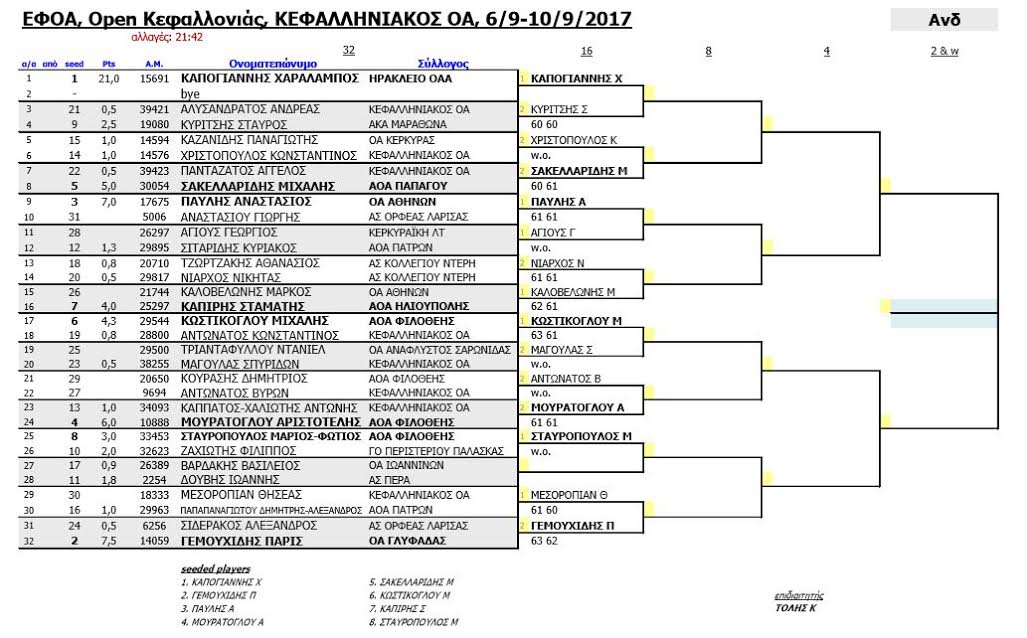 Στον επόμενο γύρο, πέρασαν και θα αγωνιστούν οι Κεφαλονίτες Μεσοροπιάν, Μαγουλάς, Αντωνάτος Β. και Χριστόπουλος.