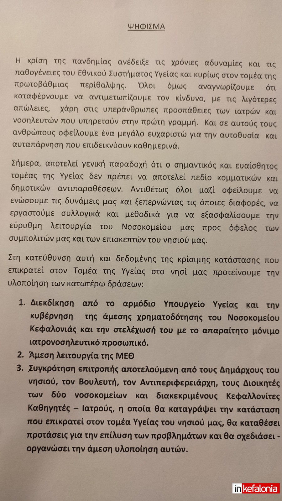 Διεκδίκηση και προσπάθεια επίλυσης! Το Δημοτικό Συμβούλιο Αργοστολίου πήρε θέση για μια καλύτερη Υγεία και ένα στελεχωμένο Νοσοκομείο Κεφαλονιάς (video)