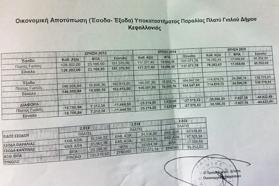 Στο Δήμο Κεφαλονιάς για 3+2 έτη ο Πλατύς Γιαλός - Η πτώση των εσόδων σε έγγραφο με τη σφραγίδα της Δημοτικής Αρχής
