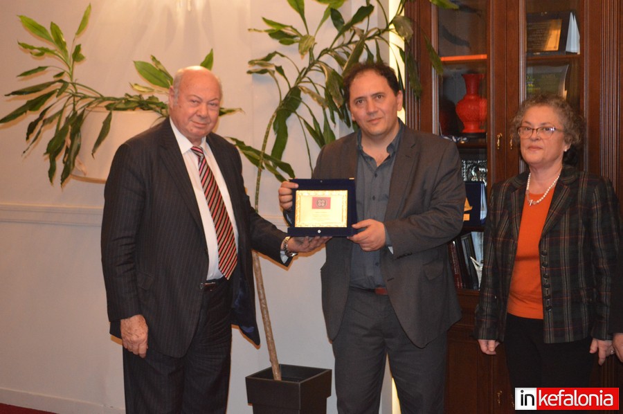 Τέλος ευχαρίστησαν τον Γενικό Γραμματέα για την επίσκεψη του αποδίδοντας του τιμητική πλακέτα καθώς και ένα καλάθι με παραδοσιακά κεφαλλονίτικα προϊόντα.