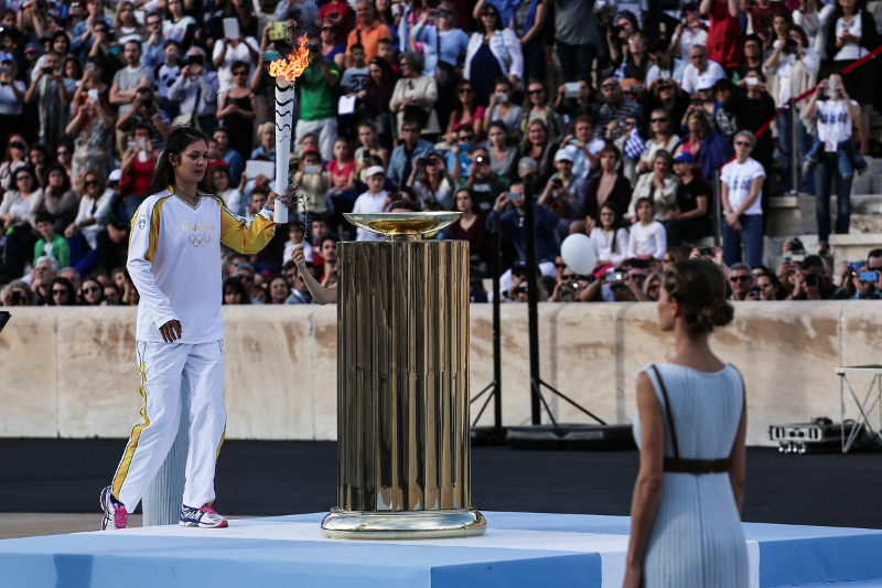 Την διοργανώτρια πόλη εκπροσώπησε ο πρόεδρος της Οργανωτικής Επιτροπής Κάρλος Νούζμαν, που παρέλαβε το Φως του Ολυμπισμού από τον Πρόεδρο της Ελληνικής Ολυμπιακής Επιτροπής Σπύρο Καπράλο. Προηγήθηκε στο Καλλιμάρμαρο τελετουργικό με την Πρωθιέρεια Κατερίνα Λέχου και τις Ιέρειες, που έχει εμπνευστεί η Χορογράφος Άρτεμις Ιγνατίου υπό τους ήχους της μουσικής του συνθέτη Γιάννη Ψειμάδα.