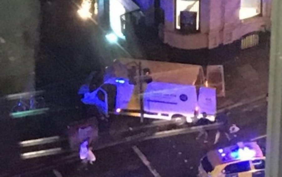 Tο περιστατικό εκτυλίχθηκε αργά τη νύχτα του Σαββάτου. Ένα λευκό φορτηγό έπεσε πάνω σε πεζούς στην γέφυρα και στη συνέχεια χτύπησε στα κιγκλιδώματα.