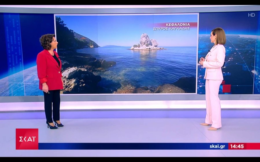 Φωτογραφία μου από το χαρακτηριστικό Νησάκι Βράχος κοντά στο λιμάνι του Πόρου της Κεφαλονιάς μας επέλεξε σήμερα η έγκυρη μετεωρολόγος του ΣΚΑΪ Χριστίνα Σούζη να προβάλει πρώτο στο μεγάλης τηλεθέασης Μεσημβρινό Δελτίο Ειδήσεων του σταθμού με την Εύα Αντωνοπούλου!
