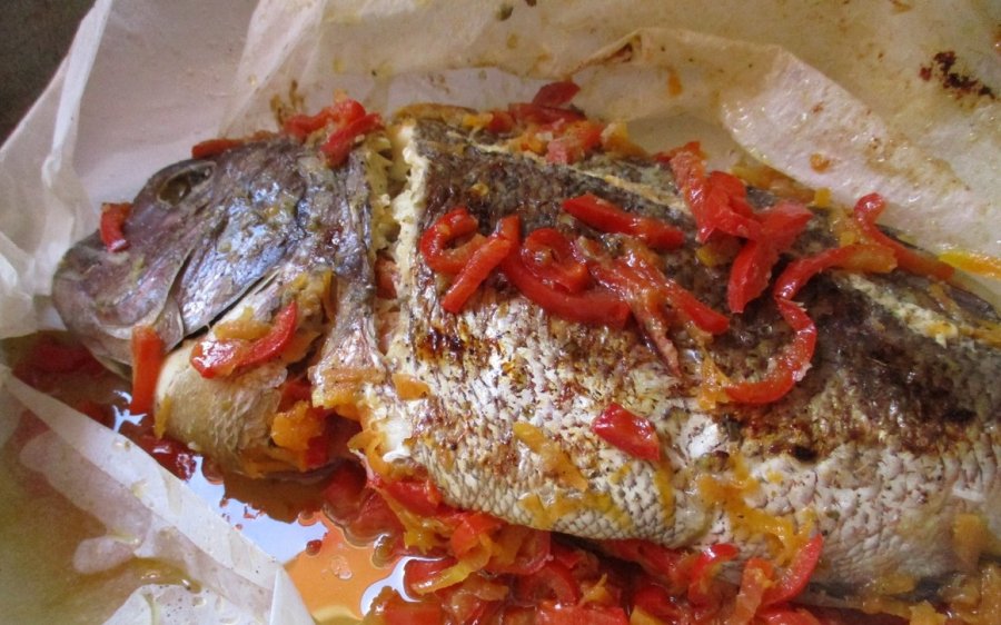 Φαγκρί στην λαδόκολλα με λαχανικά από την Σία Λαδά