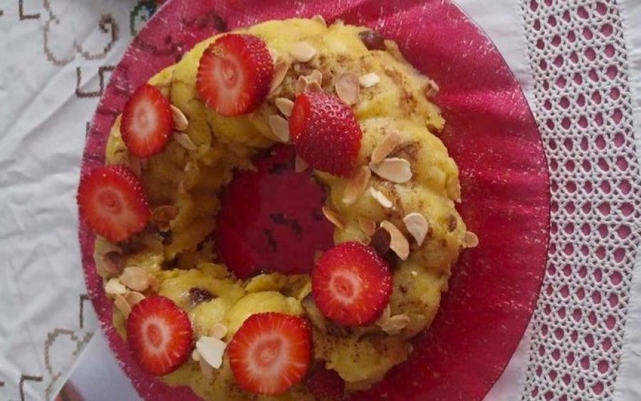 Ο Χαλβάς της Σαρακοστής, όπως τον έφτιαχναν τα παλιά χρόνια, διακοσμιμένος με φράουλες και αμύγδαλο.