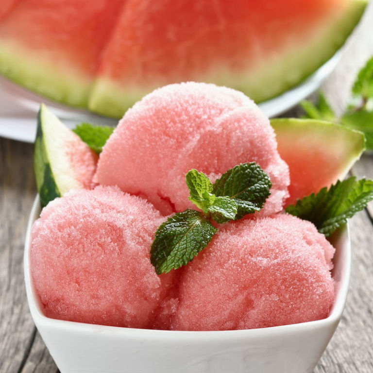 Σορμπέ καρπουζιού με μέλι βασιλικό και Ecco Domani Pinot Grigio