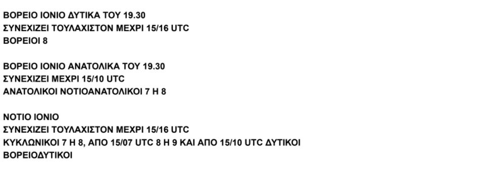«Λήψη Αυξημένων Μέτρων λόγω Αναγγελίας Θυελλωδών Ανέμων ».