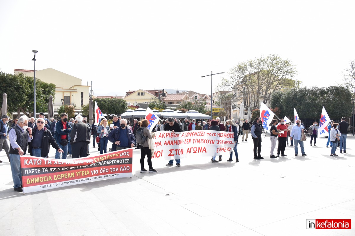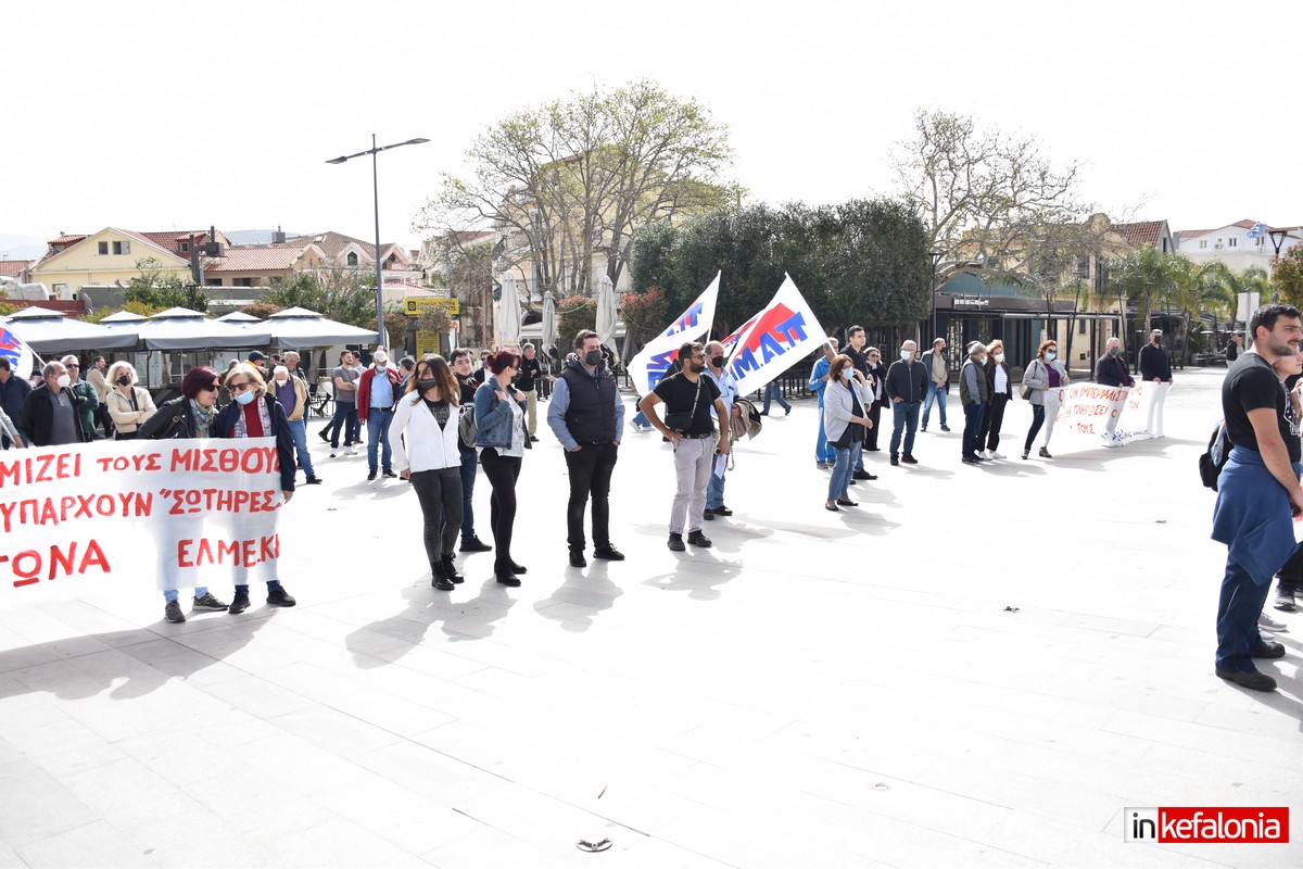 Στην απεργιακή συγκέντρωση μίλησαν, η πρόεδρος από το Σωματείο Επισιτισμού και Ξενοδοχοϋπάλληλων Κεφαλονιάς και Ιθάκης Αγγελική Κωνσταντοπούλου, ο πρόεδρος εκπαιδευτικών πρωτοβάθμιας Εκπαίδευσης στην Κεφαλονιά, Βαγγέλης Βαρδαραμάτος, ο πρόεδρος των Δημοτικών Υπαλλήλων Κεφαλονιάς και Ιθάκης Παναγής Βλάχος, ο πρόεδρος του Σωματείου Υδραυλικών Κεφαλονιάς Γιώργος Κουμαριτώτης, ο πρόεδρος της ΝΕ της ΑΔΕΔΥ Δημήτρης Μαντζουράτος, ενώ την κεντρική ομιλία έκανε ο πρόεδρος του Εργατικού Κέντρου Κεφαλονιάς και Ιθάκης Σπύρος Καμπίτσης, ενώ συμμετείχαν εκπαιδευτικοί, καθώς και εργαζόμενοι στον κλάδο του τουρισμού.