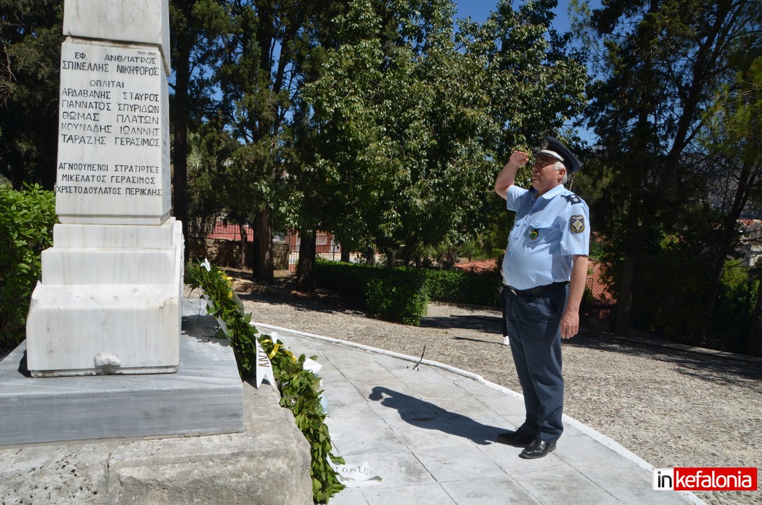 Στην Ιερά τελετή, που τέλεσε ο αρχιμανδρίτης π. Σπυρίδωνας Πετεινάτος, παρευρέθηκαν ο αντιπεριφερειάρχης Σταύρος Τραυλός, ο πρόεδρος του δημοτικού συμβουλίου Νικόλαος Βαλλιανάτος, καθώς και οι εκπρόσωποι των σωμάτων ασφαλείας της Κεφαλονιάς.. Τελετάρχης ορίστηκε η Ευαγγελία Σαμόλη, υπάλληλος της Περιφερειακής Ενότητας Κεφαλληνίας.