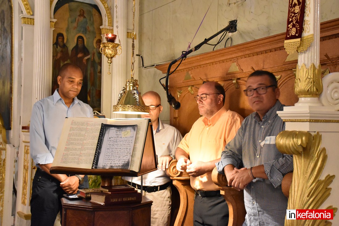 Στον εσπερινό τέλεσε ο ιερέας π. Αντώνιος Καγγελάρης και τον λάμπρυνε με την παρουσία της η εκκλησιαστική χορωδία υπό την διεύθυνση του Αγαθάγγελου Γεωργακάτου.