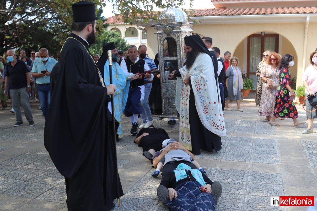 Χοροστατούντος του σεβ. Μητροπολίτη Κεφαλληνίας Δημητρίου, τελέστηκε η επιστροφή του σκηνώματος του Αγίου Γερασίμου από την μεγάλη εκκλησία στη μικρή.