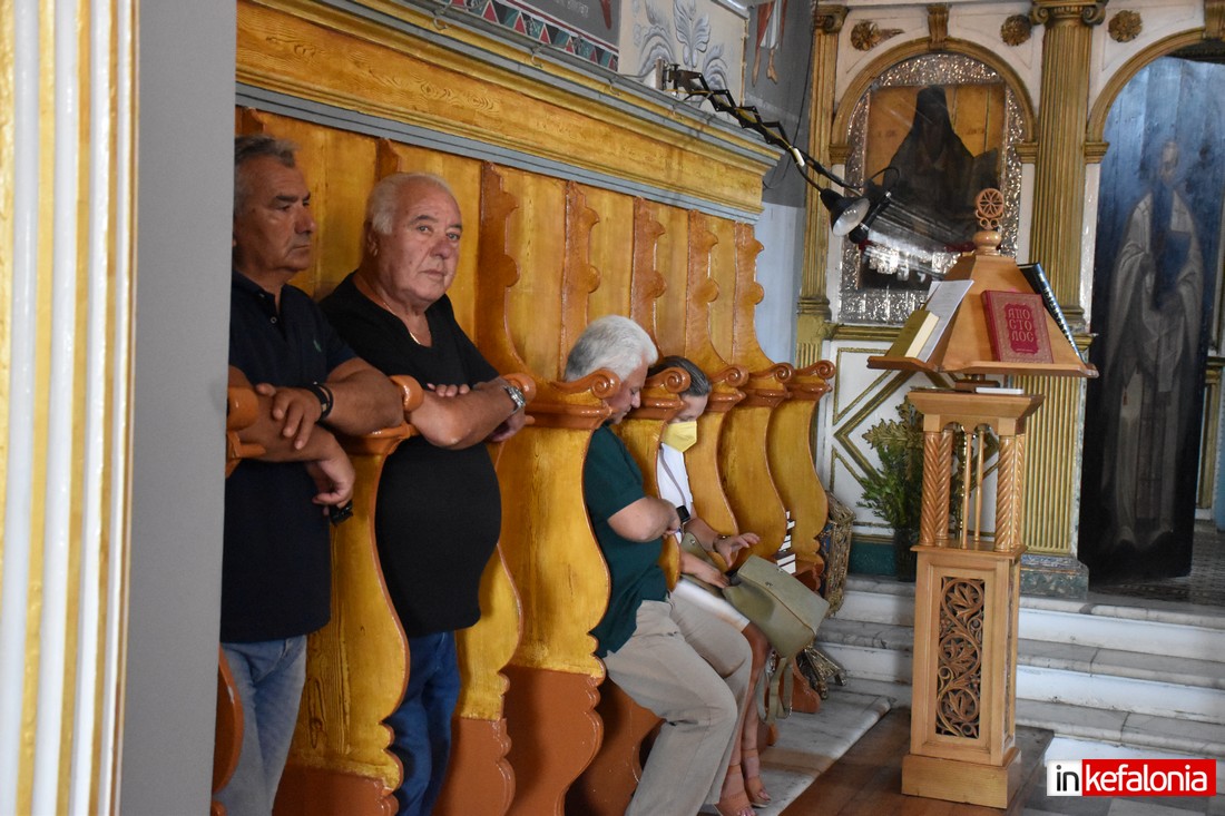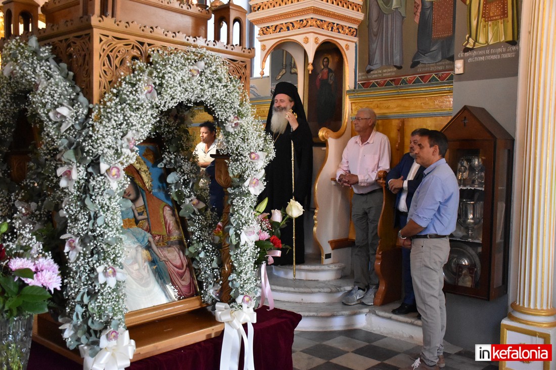 Την παράκληση τέλεσε ο σεβ. Μητροπολίτης Κεφαλληνίας κ. Δημήτριος, ενώ ακολούθως η εικόνα «σηκώθηκε» στον νέο της θρόνο και πέρασε απέναντι συνοδευόμενη από πλήθος πιστών, ψαλτών και ιερέων.