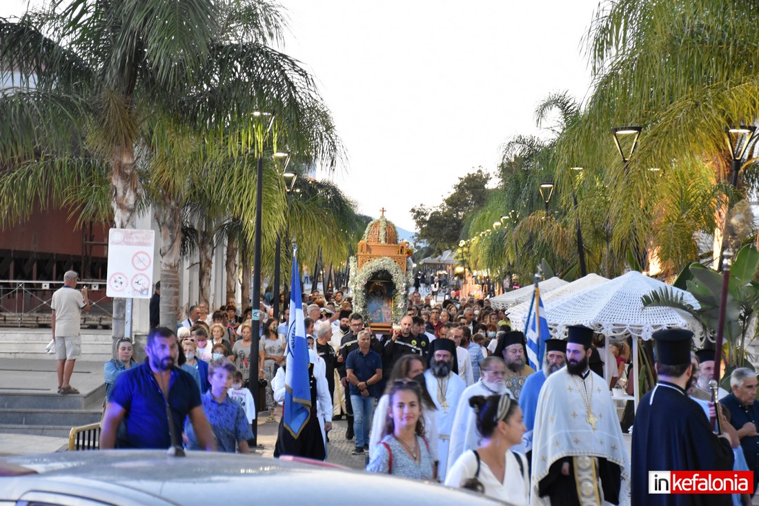 Με λαμπρότητα, μεγαλοπρέπεια και πλήθος πιστών η λιτανεία της ιεράς εικόνα της Παναγίας Δραπανιώτισσας, προστάτιδας του Αργοστολίου, η οποία μετέβη από την εκκλησία στο Δράπανο, στον Ιερό Ναό του Αγίου Σπυρίδωνα στο Λιθόστρωτο, περνώντας μέσα από την Κεντρική πλατεία Αργοστολίου.