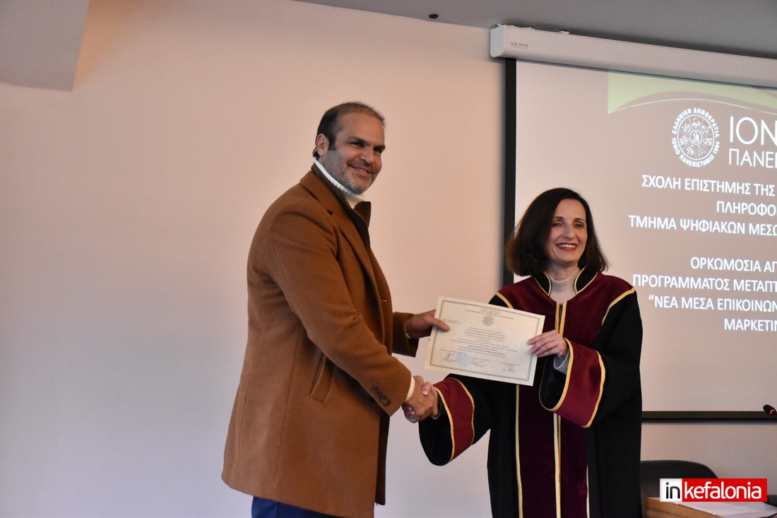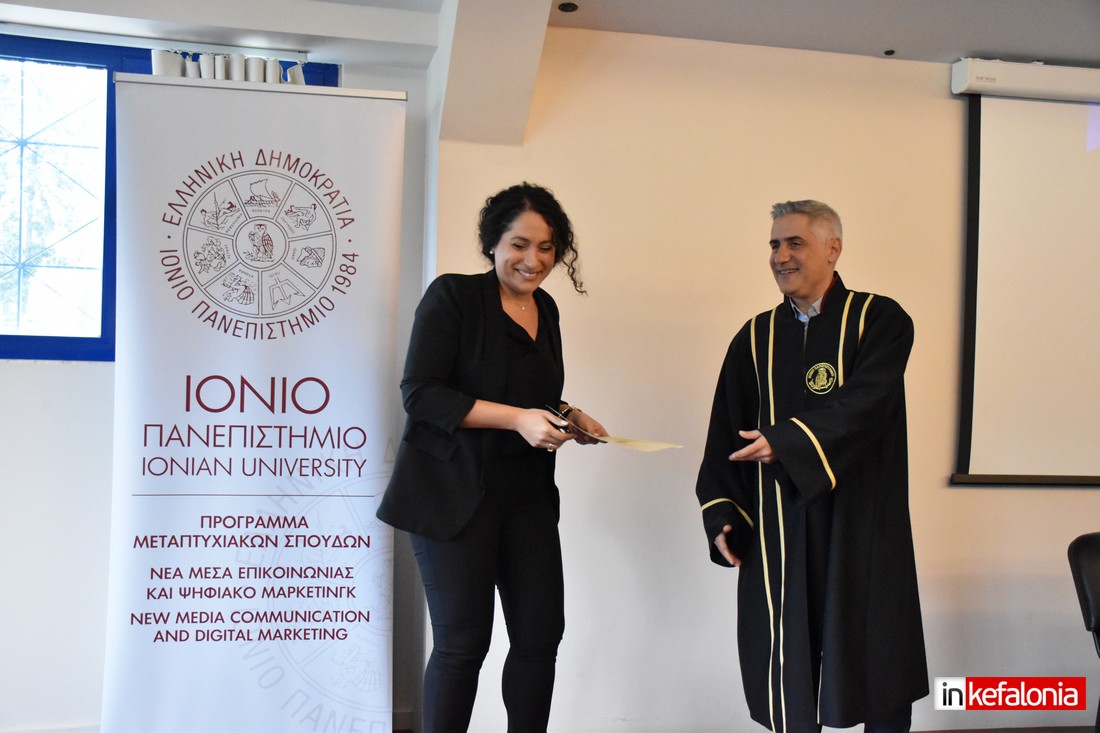 Ο Πρύτανης του Ιονίου Πανεπιστημίου Ανδρέας Φλώρος, χαιρέτισε μέσω τηλεδιάσκεψης την τελετή ορκωμοσίας, ενώ τις απονομές έκαναν ο πρόεδρος του τμήματος Σπυρίδων Πολυκαλάς, η αντιπρύτανης Αικατερίνη Καμπάση, ο αναπληρωτής Αναπληρωτής Καθηγητής, στο Τμήμα Ψηφιακών Μέσων και Επικοινωνίας Αγησίλαος Κονιδάρης.
