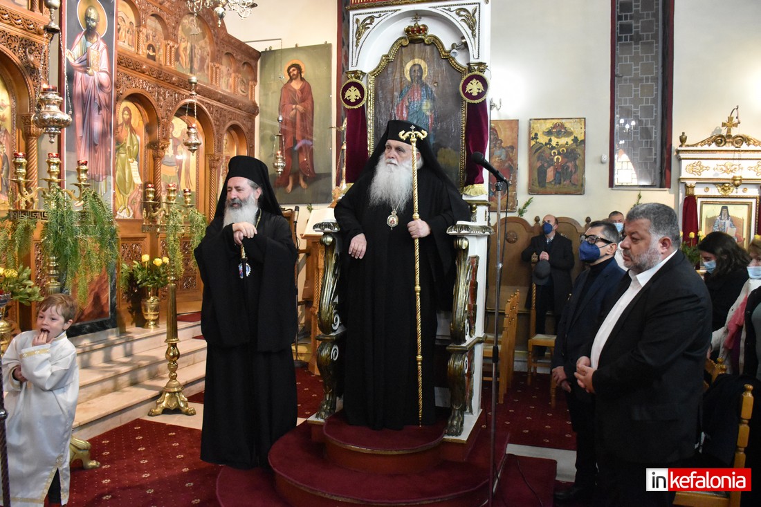 Τη λειψανοθήκη με τα ιερά λείψανα κόμισε ο σεβ. Μητροπολίτης Αργολίδας Νεκτάριος, ενώ της υποδοχής προέστη ο σεβ. Μητροπολίτης Κεφαλληνίας Δημήτριος, πλαισιωμένος από ιερείς από όλη την Κεφαλονιά.