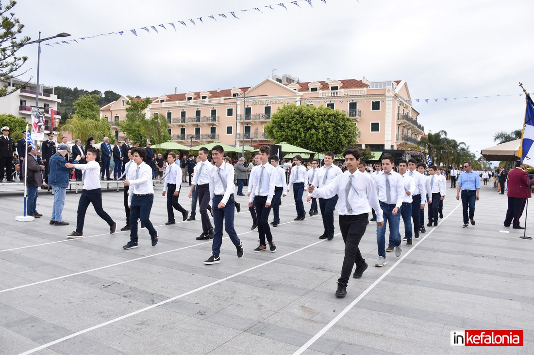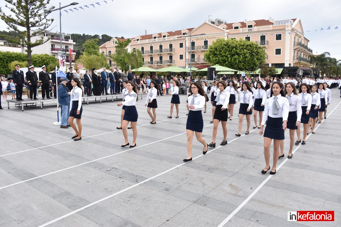 Παρέλασαν, το Λύκειο Ελληνίδων Παράρτημα Αργοστολίου, ο Ναυτικός Όμιλος Αργοστολίου, σχολεία από την πρωτοβάθμια και την δευτεροβάθμια εκπαίδευση του Δήμου Αργοστολίου, το Ειδικό Δημοτικό Σχολείο Κεφαλονιάς, το Ειδικό Σχολείο των Φαρακλάτων, Σπουδαστές της ΑΕΝ, το 1ο Σύστημα προσκόπων Αργοστολίου.