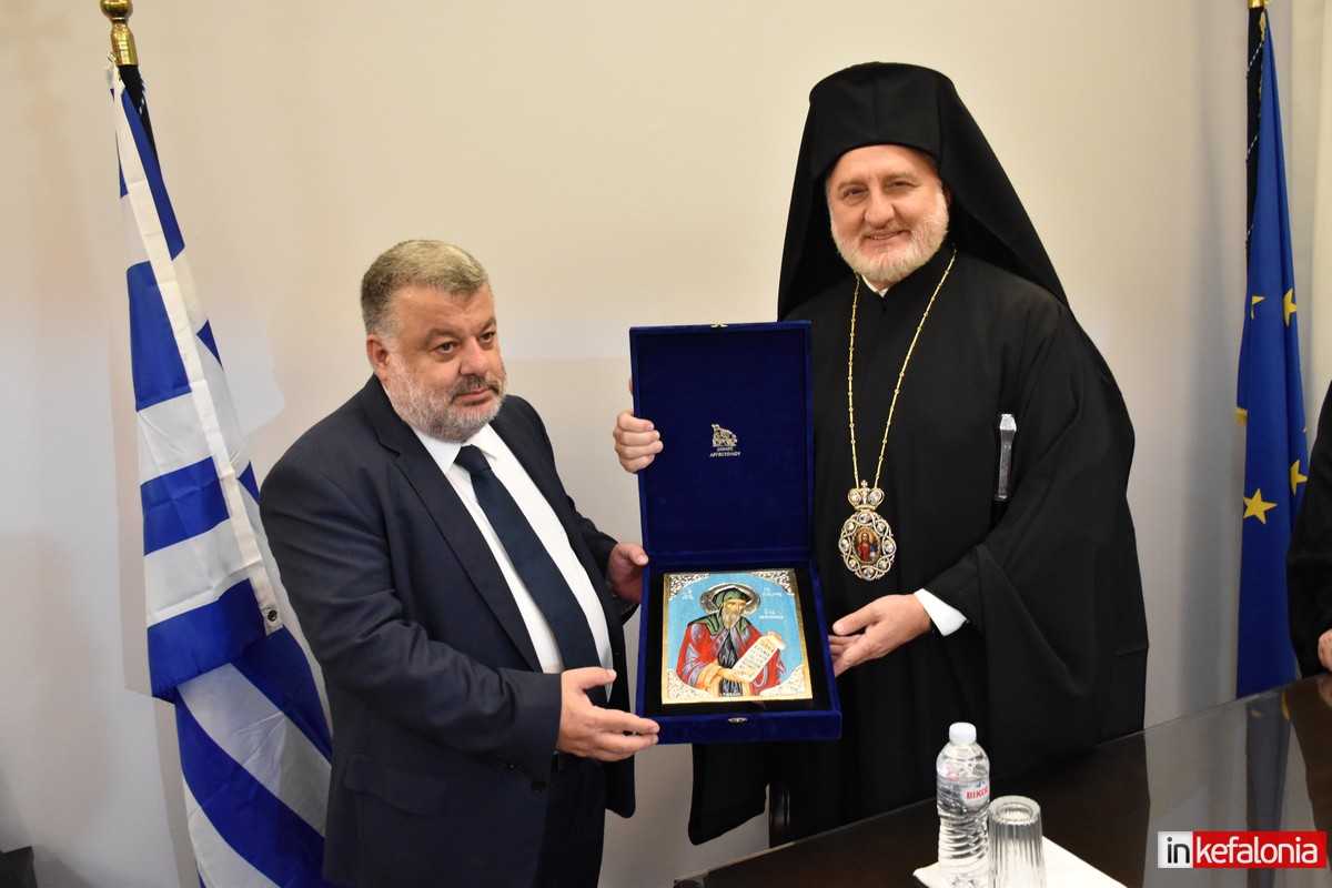 Ακολούθως, έγινε επίσκεψη στην Περιφερειακή Ενότητα Κεφαλονιάς και Ιθάκης, όπου εκεί τον υποδέχθηκε ο Αντιπεριφερειάρχης Σταύρος Τραυλός, ανταλλάσσοντας αναμνηστικά, ενώ η πρώτη μέρα στην Κεφαλονιά, έκλεισε με επίσκεψη στο Μητροπολιτικό Μέγαρο, εκεί όπου ο κ. Ελπιδοφόρος γνώρισε τους ιερείς του νησιού.