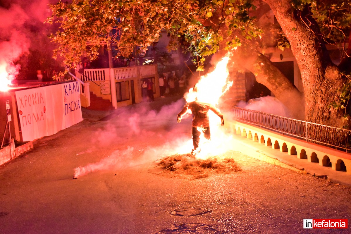 Το ομοίωμα του Ιούδα, κάηκε μαζί με ρίψη κροτίδων.