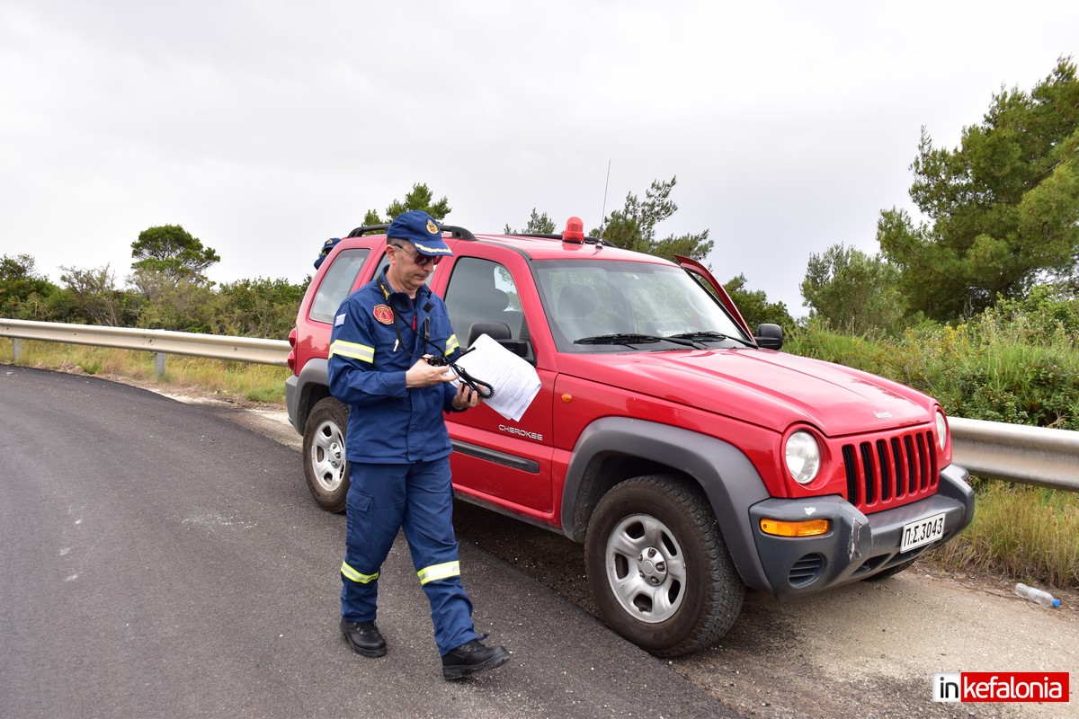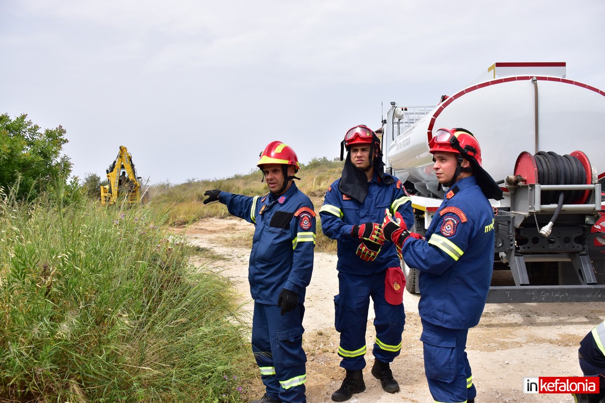 Το σενάριο της άσκησης, ήθελε πυρκαγιά στην περιοχή του Πλατύ Γιαλού, πλησίον του δρόμου Αργοστολίου – Αεροδρόμιο.