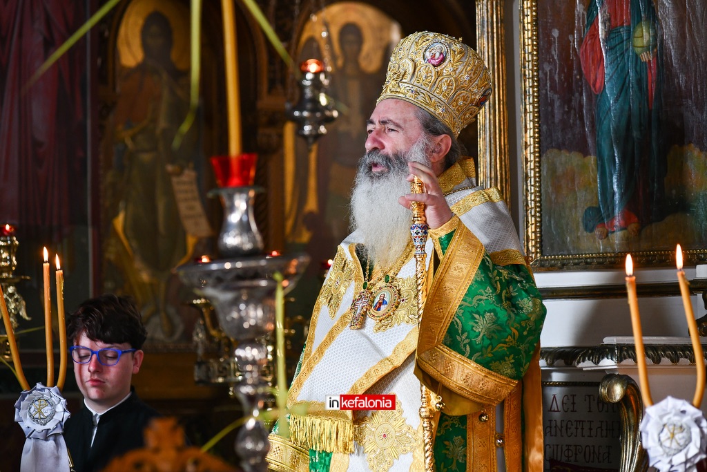 Της Ακολουθίας προεξήρχε ο Σεβασμιώτατος Μητροπολίτης Κεφαλονιάς Δημήτριος, ο οποίος απηύθυνε λόγο προς τους παρευρισκόμενους, επισημαίνοντας το βαθύ νόημα της ημέρας και καλώντας τους πιστούς να βιώσουν με πνευματική εγρήγορση την Αγία και Μεγάλη Εβδομάδα που ξεκινά.