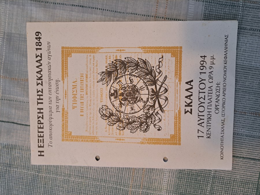 Στις 18 Αυγούστου 1998 έγινε παρουσίαση του βιβλίου: «Η Εξέγερση της Σκάλας και περιοχής Ελειού-Πρόννων του 1849». Επιμέλεια: Σταματούλα Ζαπάντη, Ιστορικός