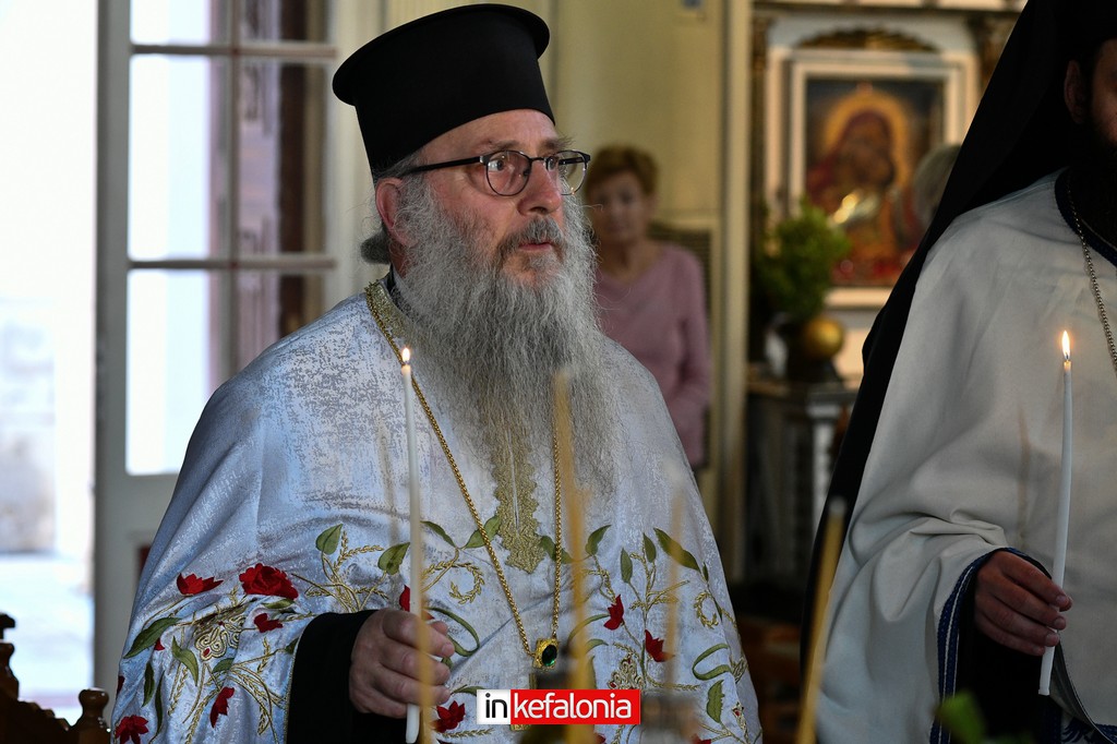Την Ακολουθία τέλεσε ο Μητροπολίτης Κεφαλληνίας κ. Δημήτριος, παρουσία ιερέων της Μητροπόλεως και πλήθους πιστών.