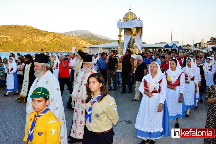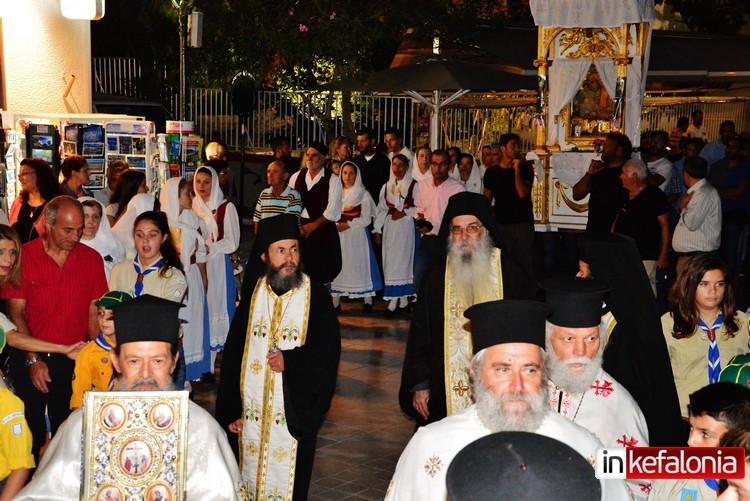 Προηγουμένως , ο θρόνος με την εικόνα της Παναγίας είχε περάσει από την παραλία και την πλατεία Αργοστολίου, σταματώντας σε διάφορα σημεία της πόλης όπου γίνονταν παρακλήσεις.