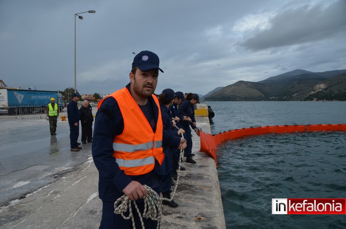 Με επιτυχία πραγματοποιήθηκε σήμερα το πρωί προγραμματισμένη άσκηση του Λιμενικού Σώματος στο Λιμάνι Αργοστολίου η οποία προέβλεπε την καταπολέμηση θαλάσσιας ρύπανσης.