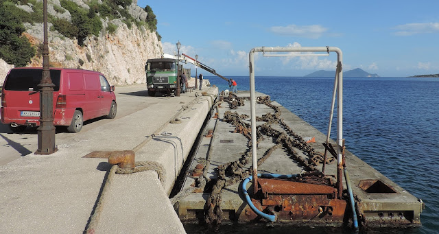 Άρχισαν οι εργασίες αποσυναρμολόγησης του πλωτού από το λιμάνι των Φρικών.