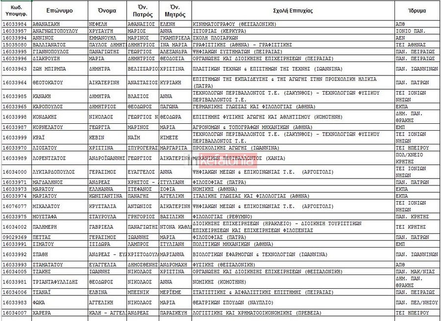 ΕΠΙΤΥΧΟΝΤΕΣ 2016 - ΕΠΑΛ Α ΟΜΑΔΑ ΠΑΛΙΟ ΣΥΣΤΗΜΑ