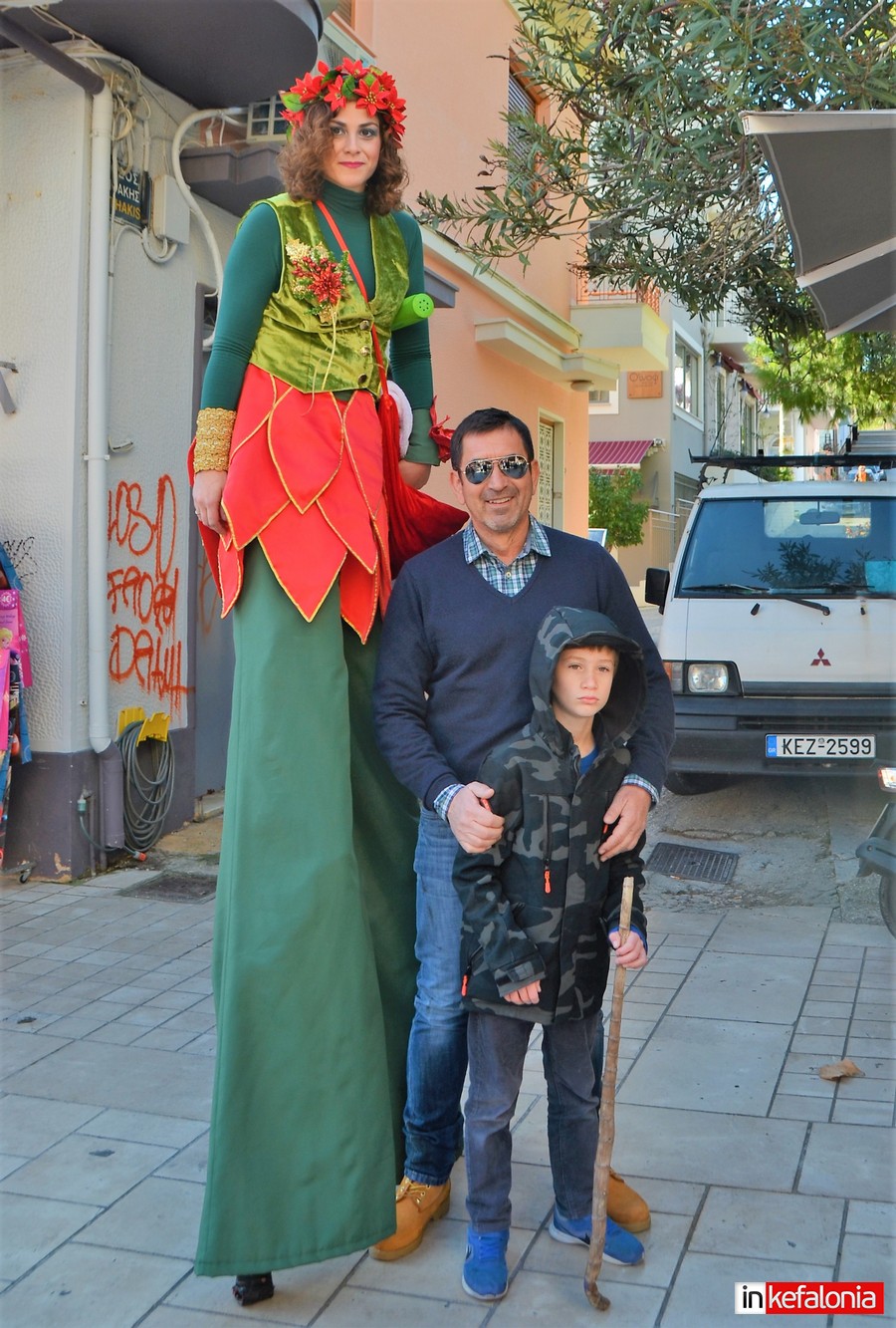 Ο Άγιος Βασίλης έβγαζε αναμνηστικές φωτογραφίες με μικρούς και μεγάλους, ενώ ο φίλος του ο ξυλοπόδαρος διασκέδαζε τον κόσμο με τα κόλπα του.
