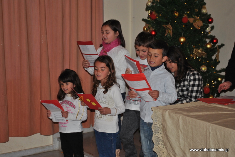 Η πρόεδρος του Συλλόγου κ. Ρούλα Γονατά - Μουστάκη, καλωσόρισε του παραβρισκόμενους και κατόπιν, ομάδα παιδιών του Συλλόγου, απέδωσαν χριστουγεννιάτικα τραγούδια.