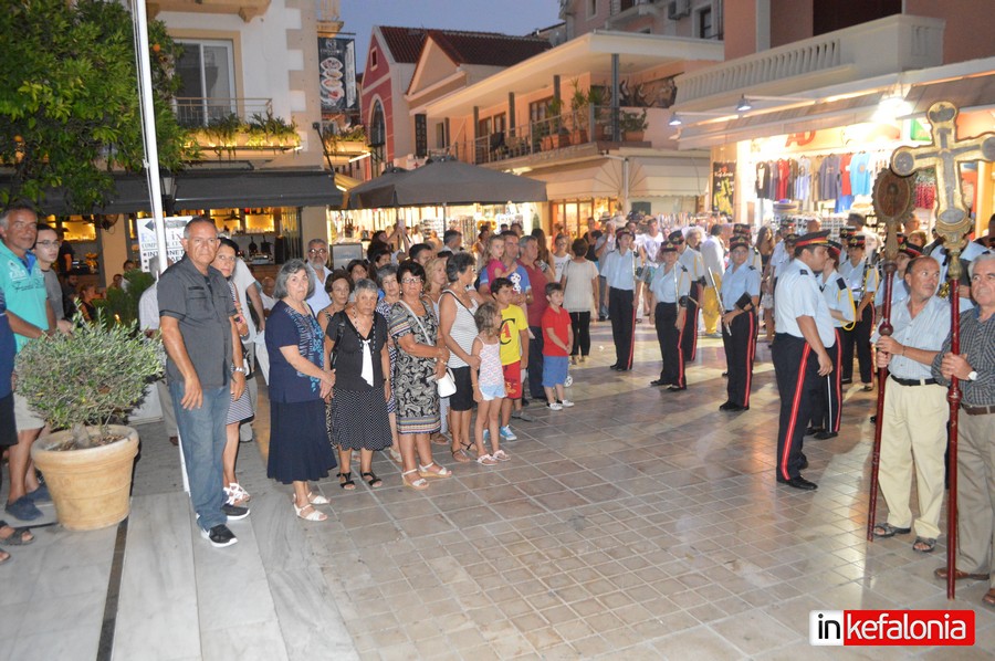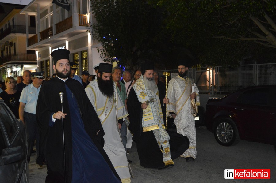 Μετά την παράκληση στον Ιερό Ναό του Άγιου Σπυρίδωνα στο Λιθόστρωτο, από τον σεβ. Μητροπολίτη Κεφαλληνίας Δημήτριο, ακολούθησε η λιτάνευση της εικόνας στους δρόμους του Αργοστολίου και ιερά παράκληση στην Κεντρική Πλατεία Αργοστολίου.