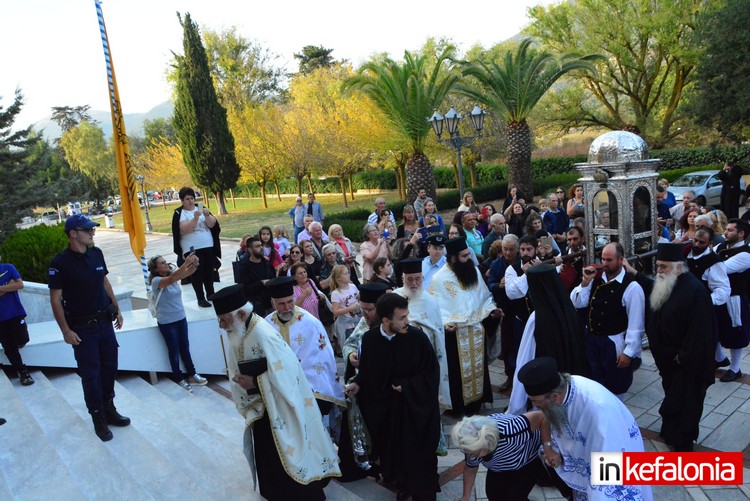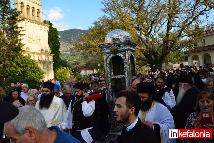 Πριν την μεταφορά του ιερού σκηνώματος, τελέστηκε παράκληση από τον σεβ. Μητροπολίτη Κεφαλληνίας κ. Δημήτριο και πληθος ιερέων από όλη την Κεφαλονιά . Το σκήνωμα του Αγίου, σήκωσαν και φέτος τα παιδιά του Πολιτιστικού Συλλόγου Βαλσαμάτων «Ο Βάλσαμος».