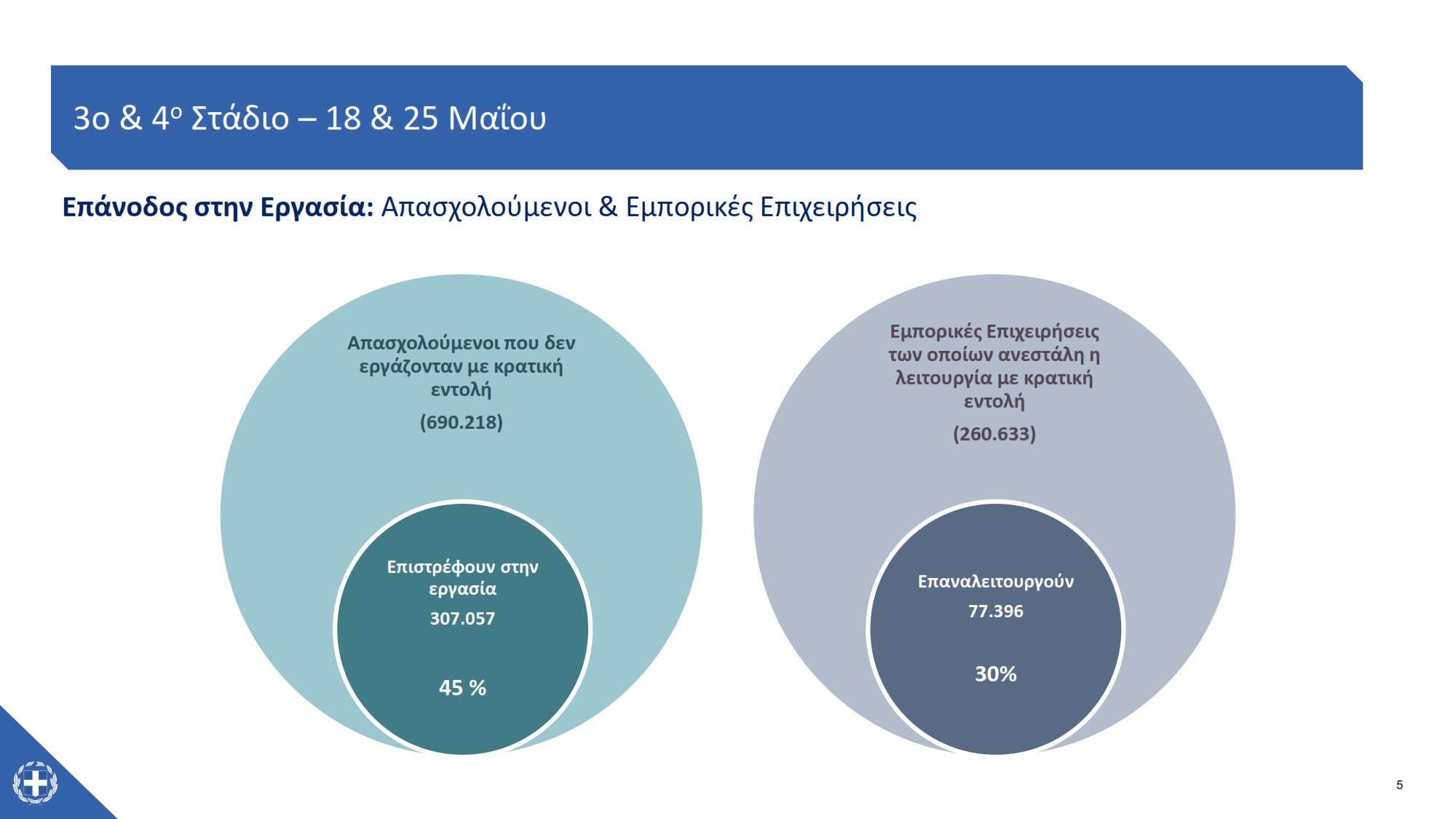 Σας ανακοινώνουμε τις δραστηριότητες και τους κανόνες λειτουργίας των οικονομικών φορέων που επανεκκινούν κατά το 3ο και το 4ο Στάδιο επαναφοράς της οικονομικής δραστηριότητας, δηλαδή τη Δευτέρα 18 Μαΐου και τη Δευτέρα 25 Μαΐου αντίστοιχα.