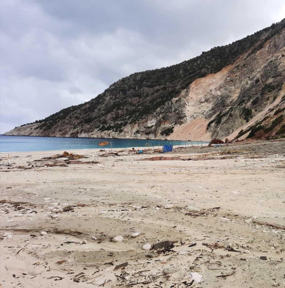 Κεφαλονιά, Παραλία Μύρτος, 4 μήνες μετά το πέρασμα του Ιανού.
