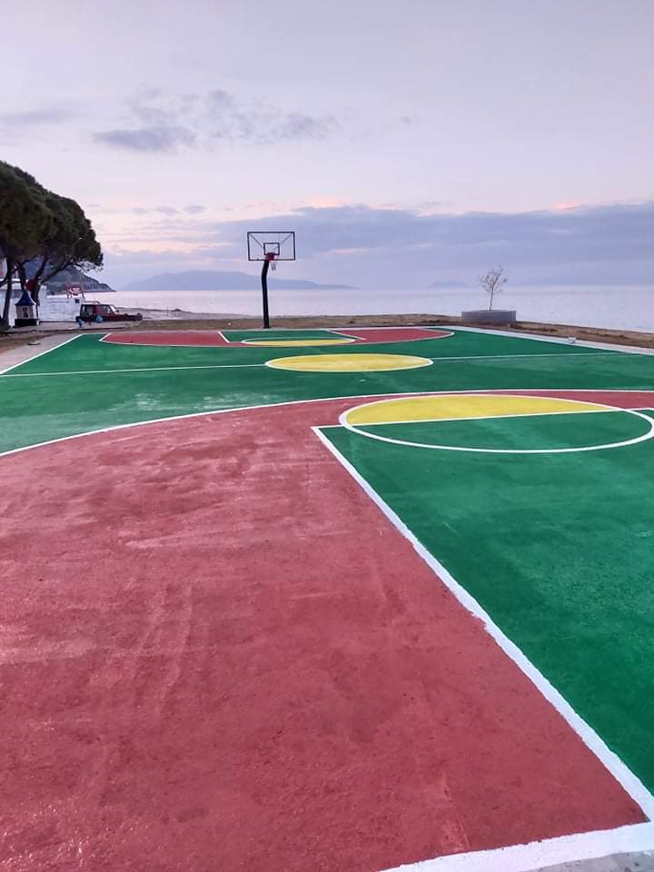 Έβαλαν... τρίποντο! Μπαίνουν οι τελευταίες πινελιές στο γήπεδο μπάσκετ του Πόρου! (εικόνες)