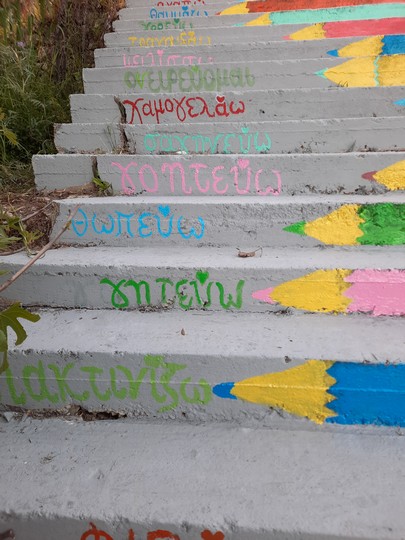 Κεφαλονιά: Ρήματα και χρώματα της αισιοδοξίας στην σκάλα του σχολείου στο Μαρκόπουλο! (εικόνες)