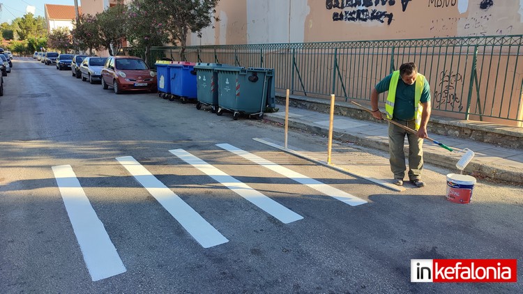 Από νωρίς το πρωί σήμερα, συνεργείο καθαριότητας του Δήμου Αργοστολίου, με παρόντα και τον αρμόδιο αντιδήμαρχο Σπύρο Σαμούρη, βάφει όλες τις διαβάσεις πεζών που βρίσκονται έξω από τα σχολεία της πόλης του Αργοστολίου.
