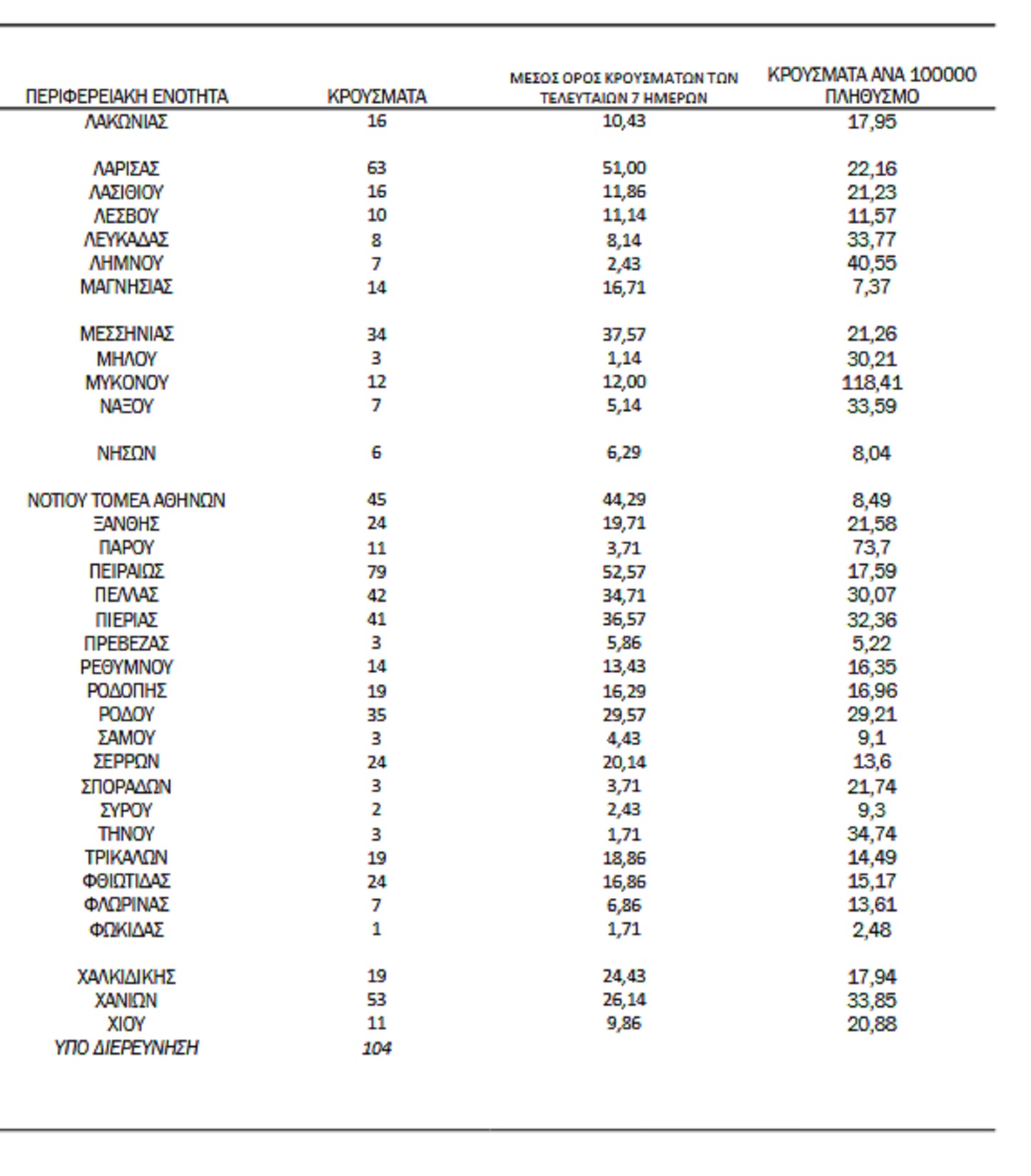 Η ενημέρωση από τον ΕΟΔΥ για τα κρούσματα από κορονοϊό στην Ελλάδα κατά το τελευταίο 24ωρο