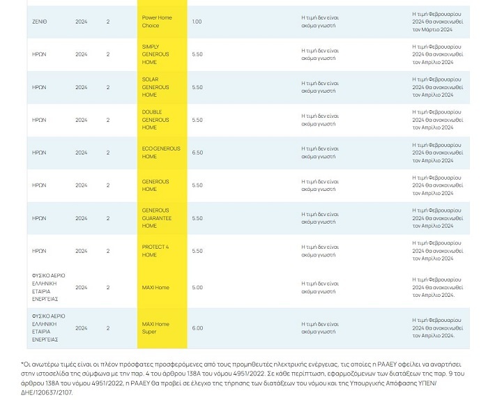 Σε ότι αφορά τι μικτά τιμολόγια και μετά από τη διαμάχη υπουργείου και Ρυθμιστικής Αρχής Ενέργειας, αποφασίστηκε, να κατατάσσονται αυτά τα τιμολόγια στην κίτρινη σήμανση. Υπάρχουν αρκετές εταιρείες που δεν έδωσαν τιμή χρέωσης κιλοβατώρας, στα κίτρινα τιμολόγια, τα απολύτως κυμαινόμενα και θα ανακοινώσουν τις χρεώσεις για τους μήνες κατανάλωσης Ιανουάριο και Φεβρουάριο, τον Μάρτιο ή τον Απρίλιο, αφού έχουν το δικαίωμα», αναφέρει ο κ. Χριστοδουλίδης.