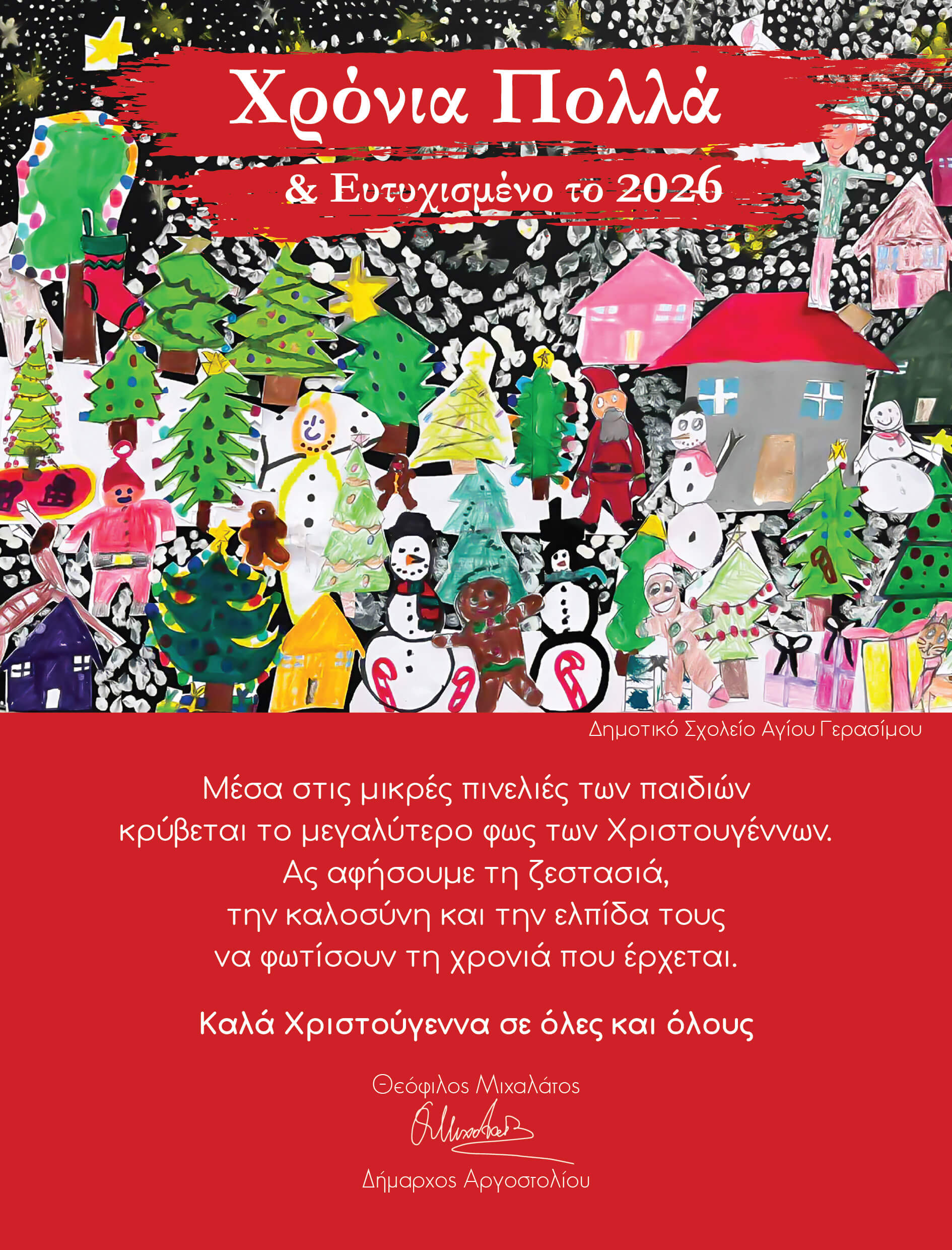 Εύχομαι από καρδιάς, σε όλες τις Κεφαλλονίτισσες και τους Κεφαλλονίτες, το έτος 2026 να αποτελέσει μια χρονιά υγείας, προόδου και δημιουργίας, με αισιοδοξία και ενότητα.