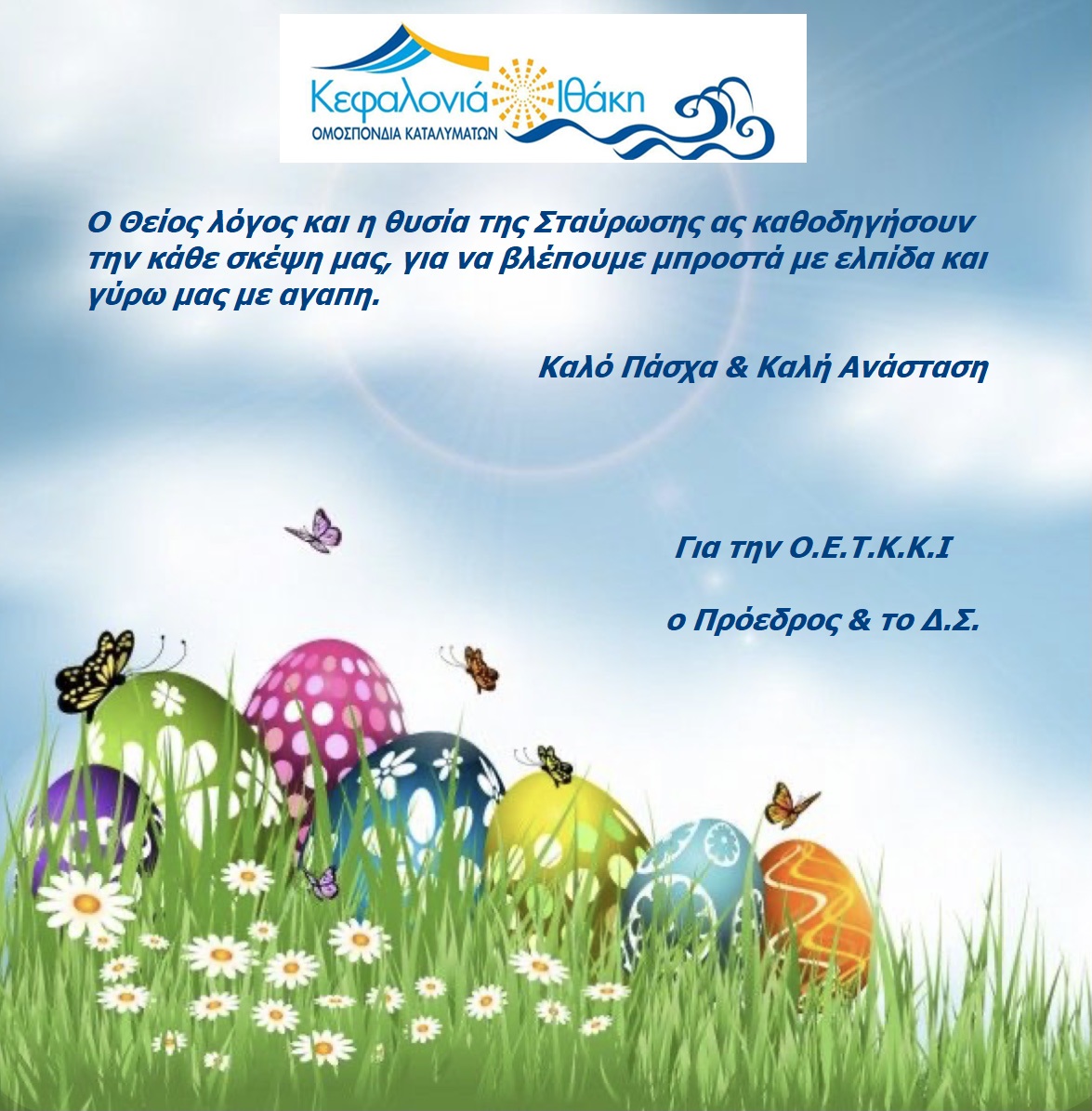 "Ο Διευθυντής , το εκπαιδευτικό και διοικητικό προσωπικό και οι καταρτιζόμενοι –ες του Δ.Ι.Ε.Κ. Γ.Ν. ΚΕΦΑΛΛΗΝΙΑΣ σας εύχονται ολόψυχα καλή Ανάσταση και καλό Πάσχα, με υγεία, ευτυχία και χαρά!
