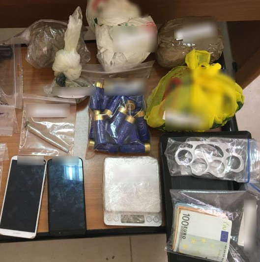 Κατασχέθηκαν, μεταξύ άλλων, ένα πιστόλι διαμετρήματος 9 mm, δεκαπέντε φυσίγγια ιδίου διαμετρήματος, ποσότητα ακατέργαστης κάνναβης, μια σιδερογροθιά, το χρηματικό ποσό των 870 €, μία ηλεκτρονική ζυγαριά ακριβείας και δέκα επτά κυνηγετικά φυσίγγια.