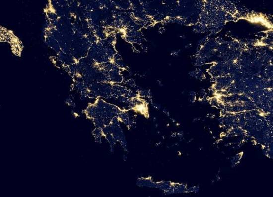 Βραδινή φωτογραφία της Ελλάδας τραβηγμένη απο δορυφόρο