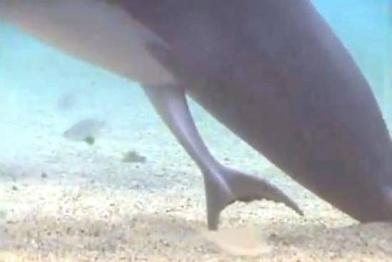 Στο βίντεο αρχικά φαίνεται η ουρά του δελφινιού, ενώ βρίσκεται ακόμα στο σώμα της μητέρας του.