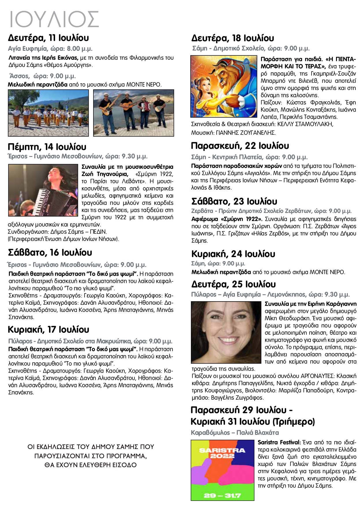 Το πρόγραμμα καλοκαιρινών εκδηλώσεων για το Δήμο Σάμης