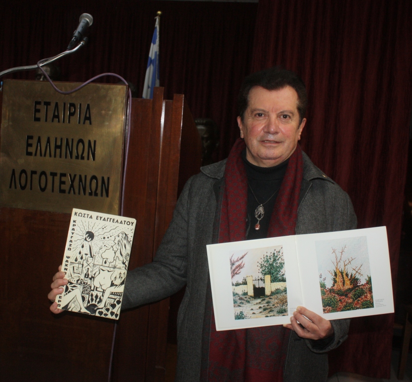 Φωτο1. Το Τιμητικό Δίπλωμα στον Κώστα Ευαγγελάτο, μέλος της Εταιρίας Ελλήνων Λογοτεχνών, του Επιμελητηρίου Εικαστικών Τεχνών Ελλάδος, μέλος του Διοικητικού Συμβουλίου της Εθνικής Εταιρίας των Ελλήνων Λογοτεχνών και της Πανελλήνιας 'Ενωσης Λογοτεχνών.