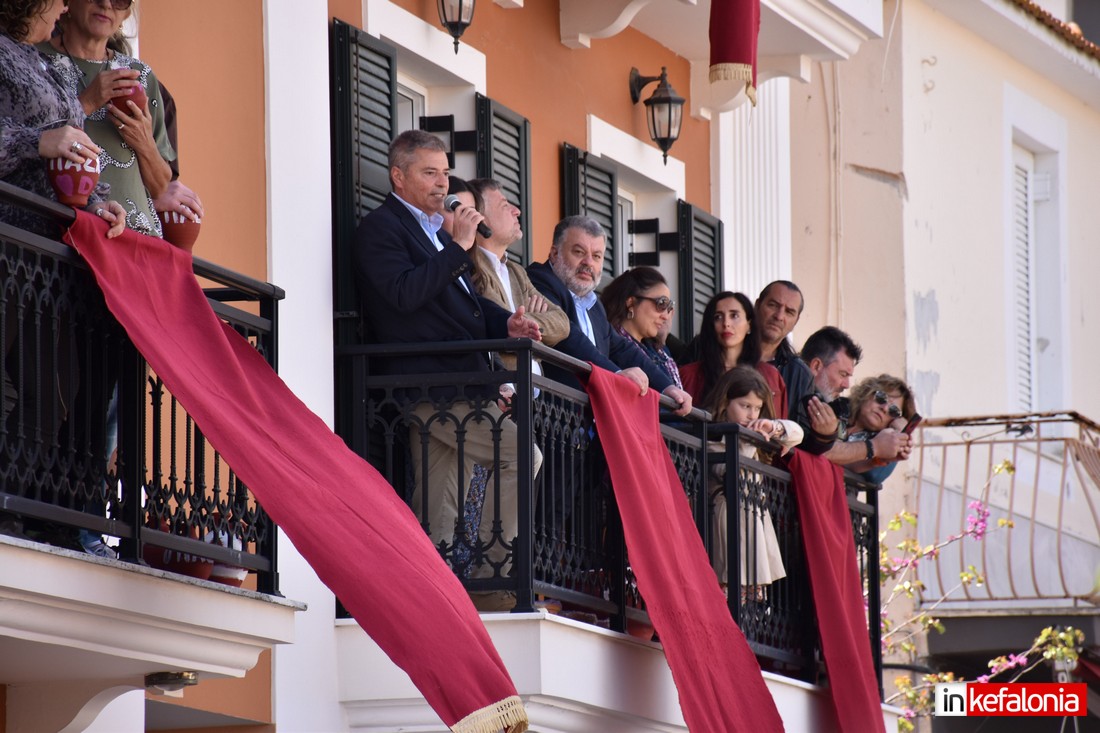 Ο… οικοδεσπότης της εκδήλωσης Δήμαρχος Αργοστολίου Θεόφιλος Μιχαλάτος, έσπασε την πρώτη στάμνα τόσο στον Αγιο Σπυρίδωνα όσο και στην Πλατεία Καμπάνας, έστειλε το μήνυμα για Καλή Ανάσταση, αλλά και για ενότητα στις εκλογές της 21ης Μαϊου.