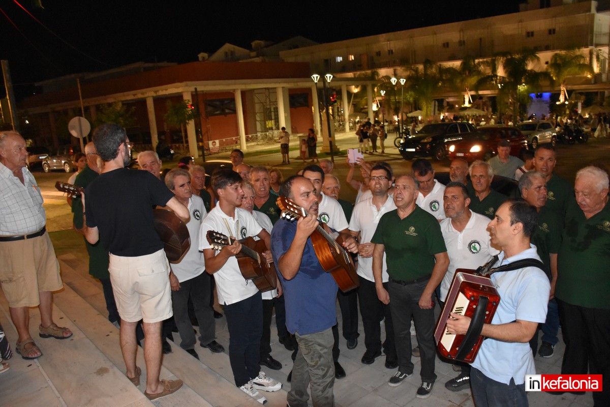 Χθες κατά την διάρκεια των εγκαινίων υπήρχε και μία ευχάριστη έκπληξη, καθώς εμφανίστηκε στην αίθουσα του Δημοτικού Θεάτρου Αργοστολίου, η Ανδρική χορωδία Δήμου Αργοστολίου μαζί με την Ανδρική Χορωδία Δήμου Ληξουρίου, που εκείνη την ώρα έκαναν περατζάδα στους δρόμους του Αργοστολίου και ‘’απογείωσαν’’ μουσικά την όμορφη εκδήλωση.